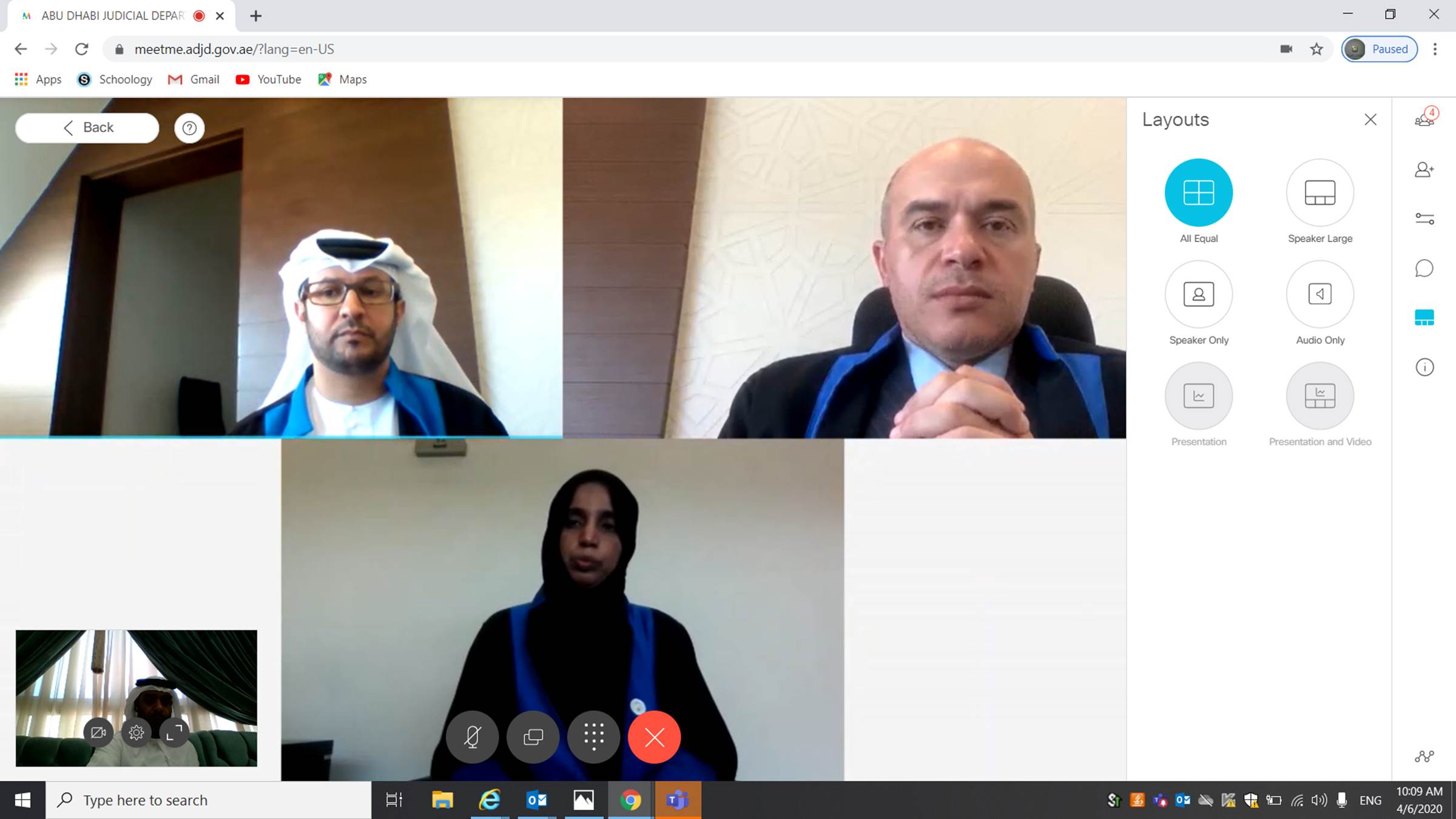 أعلنت دائرة القضاء في أبوظبي، عن توسع محكمة أبوظبي الابتدائية، في نظام التقاضي عن بعد باستخدام نظام الاتصال المرئي، ليشمل جميع الدوائر المدنية، الأحوال الشخصية، الإيجارات، التركات، القضايا المستعجلة إضافة إلى دوائر تحضير الدعوى، وذلك في إطار تطبيق خطة العمل عن بعد واستمرارية الأعمال التي اعتمدتها الدائرة بالتوافق مع جهود الدولة للحد من انتشار فيروس كورونا المستجد «كوفيد 19».