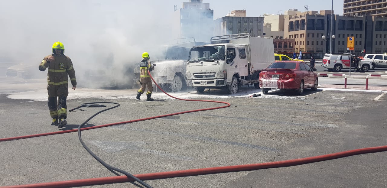 التهم حريق أربع شاحنات بموقف في دبي بحسب الدفاع المدني الذي أشار إلى أن بلاغاً ورد إلى غرفة العمليات عن حريق في موقف للسيارات بشارع بني ياس الساعة العاشرة والنصف من صباح أمس.