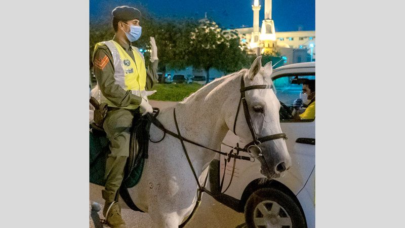 خيالة شرطة دبي نفذت 447 دورية خلال برنامج التعقيم الوطني. من المصدر