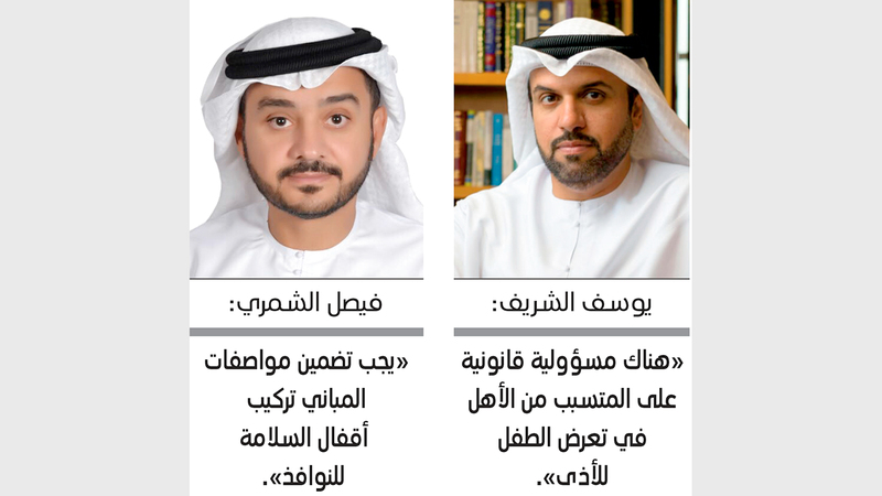 من جانبه، أكد رئيس مجلس إدارة جمعية الإمارات لحماية الطفل، فيصل الشمري، ضرورة محاسبة المقصرين في توفير الحماية اللازمة للأطفال، وتعريض حياتهم للخطر، فضلاً عن ضرورة أن تتحمل الجهات المعنية مسؤولياتها تجاه مشكلة سقوط الأطفال من البنايات.