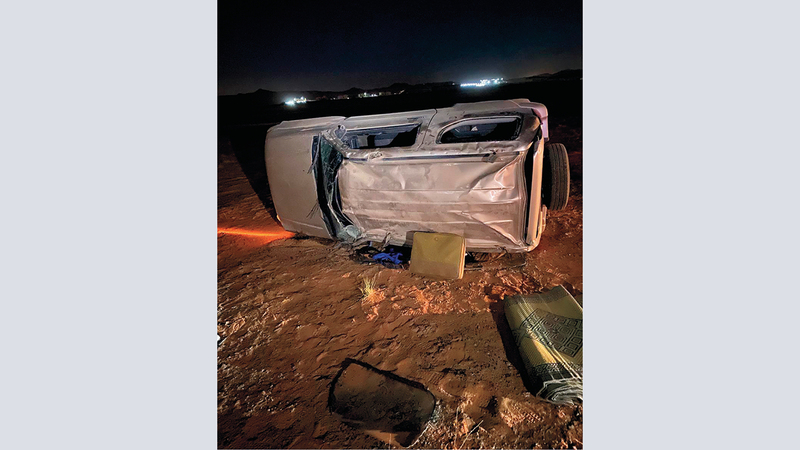المركبة تعرضت للتدهور على شارع مظلم بمنطقة الغيل. من المصدر