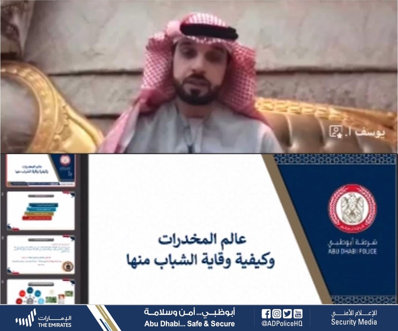 نظمت شرطة أبوظبي محاضرة عن بعد بعنوان «عالم المخدرات وكيفية وقاية الشباب منها»، ضمن خدمة التوعية والتثقيف الأسري، بالتعاون مع مؤسسة التنمية الأسرية من خلال نظام الميكروسوفت تيمز.
