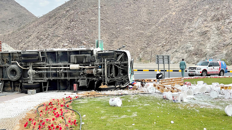 أصيب أربعة أشخاص بإصابات ما بين المتوسطة والبسيطة، أمس، نتيجة تعرضهم لحادث تدهور شاحنة واصطدامها بمركبة على شارع خورفكان في الشارقة.