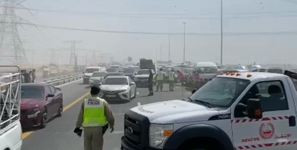 تصادم 34 مركبة على شارع الإمارات بالاتجاه من دبي إلى الشارقة