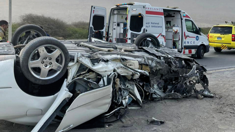 المركبة اصطدمت بعمود ثم تدهورت على الطريق. الإمارات اليوم