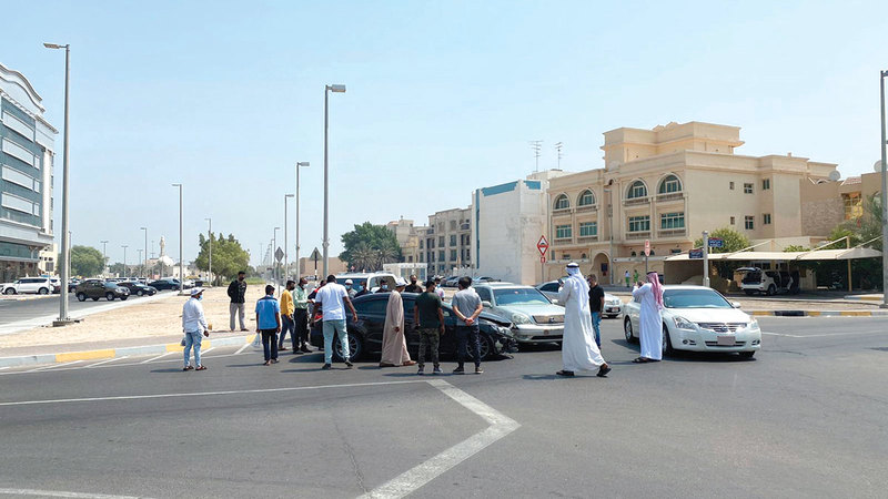 التجمهر في موقع الحادث يؤدي إلى عرقلة حركة السير. أرشيفية