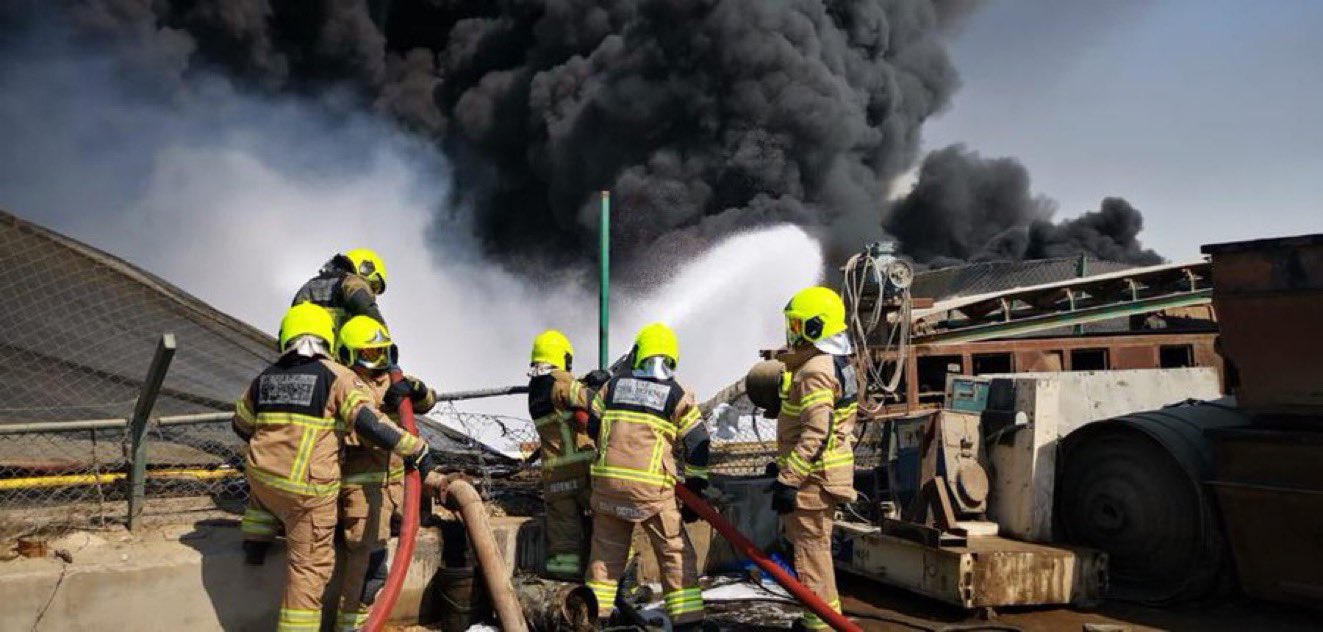 فرق الدفاع المدني في دبي تسيطر على حريق في مكب لمخلفات الزيوت في منطقة جبل علي الصناعية