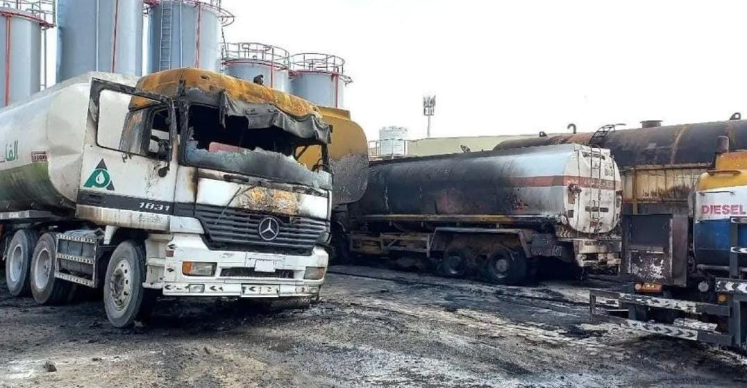 مدني عجمان يسيطر على حريق اندلع في 10 شاحنات ديزل ومقطورة