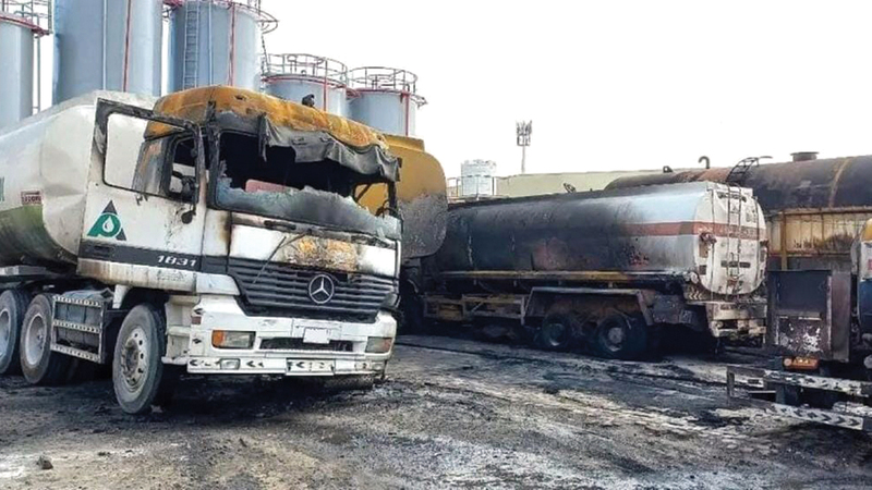 احتراق 10 شاحنات ديزل ومقطورة في عجمان