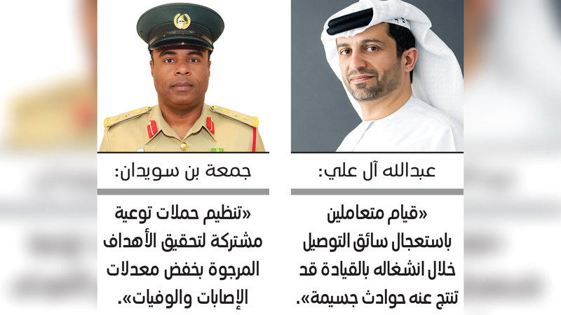 من جهته، أكد نائب مدير الإدارة العامة للمرور، العقيد جمعة بن سويدان، حرص القيادة العامة لشرطة دبي على التعاون الاستراتيجي مع هيئة الطرق والمواصلات الرامي إلى تحقيق السلامة المرورية، بالإضافة إلى برامج التوعية المشتركة، ومنها العمل سوياً لتوعية سائقي دراجات تقديم خدمة توصيل الطلبات باشتراطات السلامة والأمان، ومن ذلك، عقد العديد من الاجتماعات التنسيقية لتوحيد الجهود وتنظيم حملات توعية مشتركة، تحقيقاً للأهداف المرجوة بخفض معدلات الإصابات والوفيات.