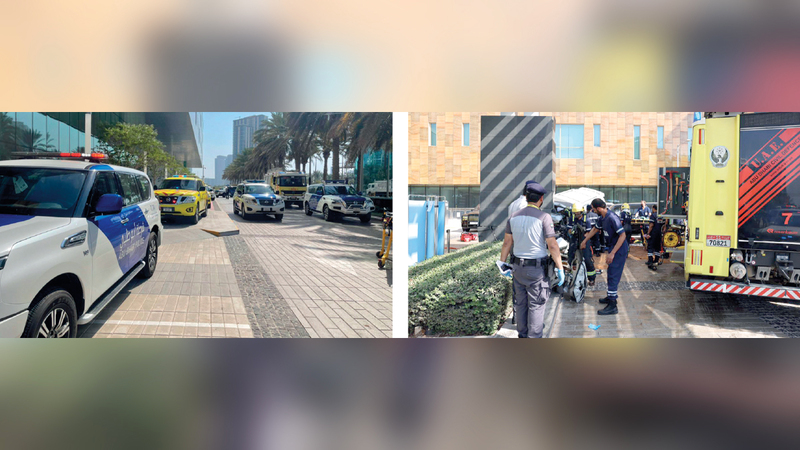 رجال الإنقاذ والشرطة يرفعون آثار الحادث. من المصدر