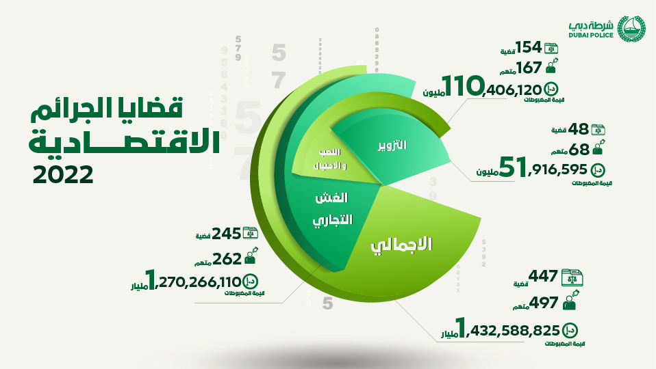 شرطة دبي تسجل 447 جريمة اقتصادية قيمتها 1.4 مليار درهم