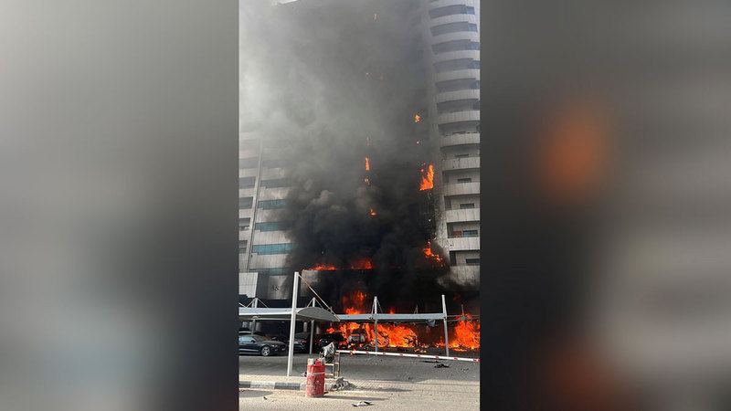 احتراق 16 شقة وتضرر 13 مركبة في حريق بناية سكنية بعجمان