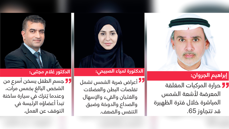 وأكد حالات الاحتباس الحراري داخل المركبات المغلقة المعرضة لأشعة الشمس المباشرة خلال فترة الظهيرة، حيث قد ترتفع درجة الحرارة داخل المركبات لتتجاوز 65، فيما تبلغ درجة الحرارة الخارجية 40 درجة، ما يشكل خطورة على الموجودين داخل المركبات، خصوصاً الأطفال.