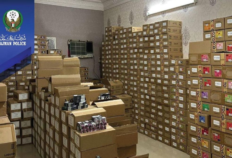 ضبط آسيويَين بتهمة تجارة وتخزين 797 ألف سيجارة إلكترونية دون ترخيص في عجمان