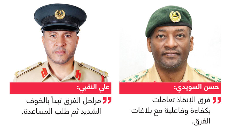بدوره، قال نائب مدير مركز شرطة الموانئ، العقيد علي عبدالله النقبي، إن المركز أعد دراسة تفصيلية حول الغرق تناولت أنواع الغرقى وهم «الغريق المتهيج» الذي يشعر بالتوتر والخوف أثناء تعرضه لأي طارئ في البحر، فيقوم بحركات سريعة وعشوائية، ويفقد تركيزه، و«الغريق المتعلق» الذي يعلق بين سطح الماء والقاع بسبب ابتلاعه كمية كبيرة من المياه، و«الغريق الغاطس» الذي ينزل إلى القاع بسبب التأخر في إنقاذه، و«الغريق المتعب» الذي يتعرض لإصابة أو مرض مفاجئ أثناء السباحة.
