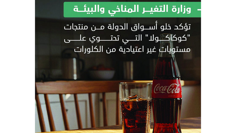 أكدت وزارة التغير المناخي والبيئة خلوّ أسواق الدولة من منتجات «كوكاكولا» التي تحتوي على مستويات غير اعتيادية من الكلورات.