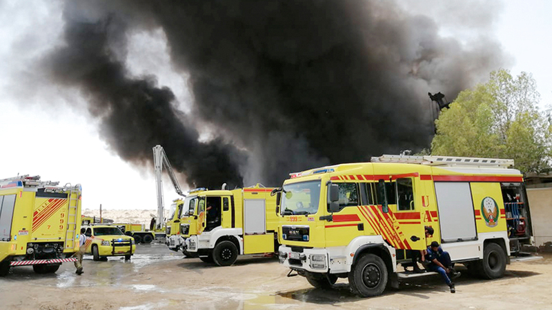السيطرة على حريق مستودع في المصفح الصناعية بأبوظبي