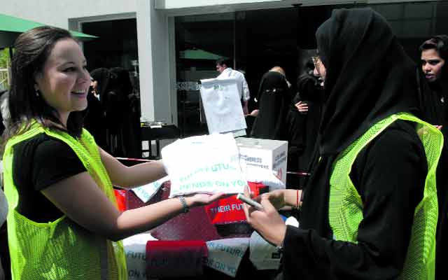 13 طالبة جمعن 29 ألف درهم في يوم واحد من بيع الهدايا التذكارية لمصلحة المعاقين. من المصدر