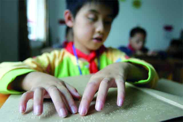 مختصون يطالبون بتعليم الطالب الكفيف طريقة «برايل» قبل دمجه فــــــــــــــــــــــــــــــــــــي المدارس. أرشيفية