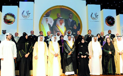 منصور بن زايد يتوسّط المكرّمين. من المصدر