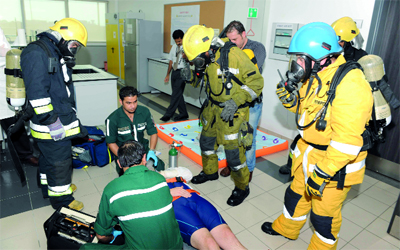 نفذت إدارة الطوارئ والسلامة العامة في شرطة أبوظبي تجربة إخلاء وتطهير وهمي، في المختبرات العلمية في جامعة خليفة في أبوظبي.