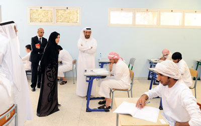 أمل القبيسي في جولة على الامتحانات داخل مدرسة أبوظبي. من المصدر