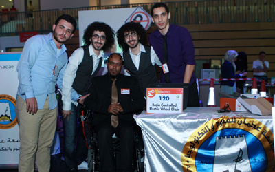 «التحكم اللاسلكي في الكرسي المتحرك عن طريق المخ»، عنوان مشروع ابتكره خمسة طلاب في أقسام الاتصالات والكهرباء، والتحكم، في كلية الهندسة جامعة عجمان، حازم محمد، ومحمد نوح، ونور علي، ويوسف محمود، وعمر محمدي، والمشروع يساعد ذوي الإعاقة على الحركة باستخدام كرسي يعمل بإشارات المخ.