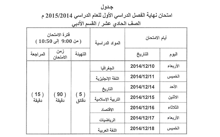 لمشاهدة جدول امتحانات القسم الأدبي والعلمي الرجاء الضغط على الرابط التالي