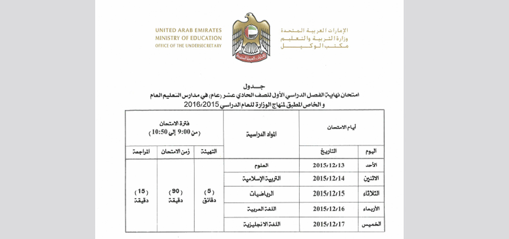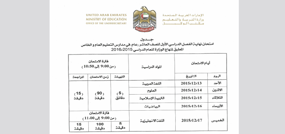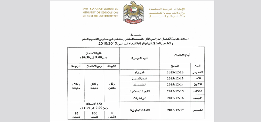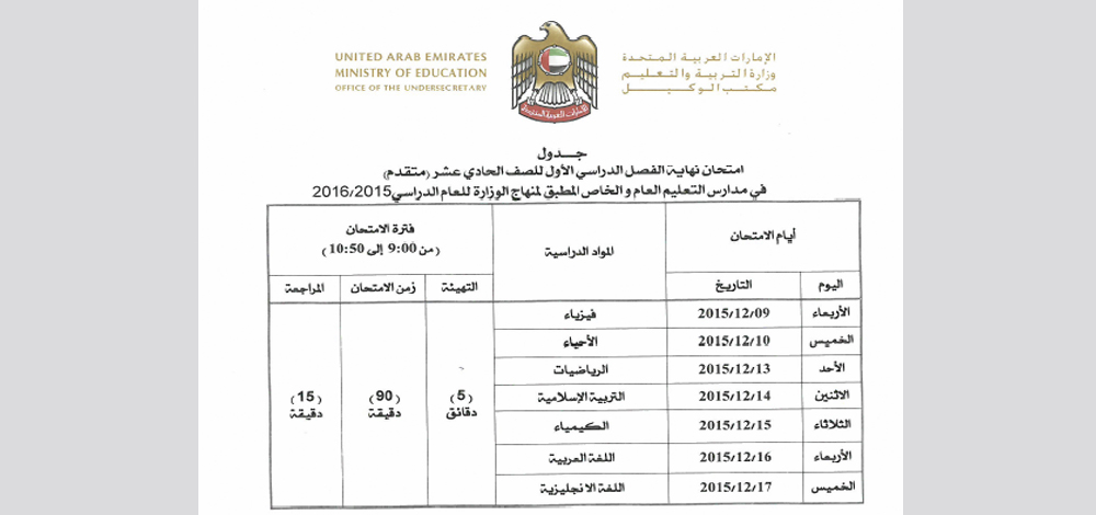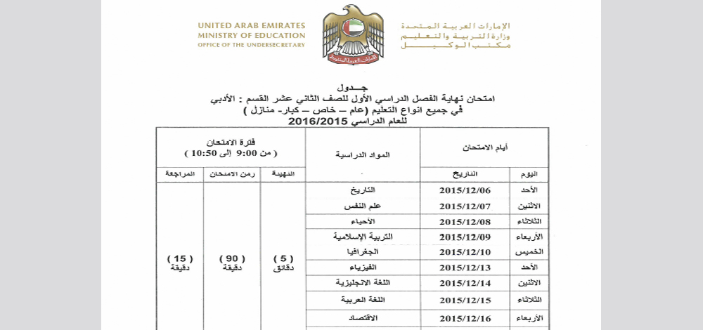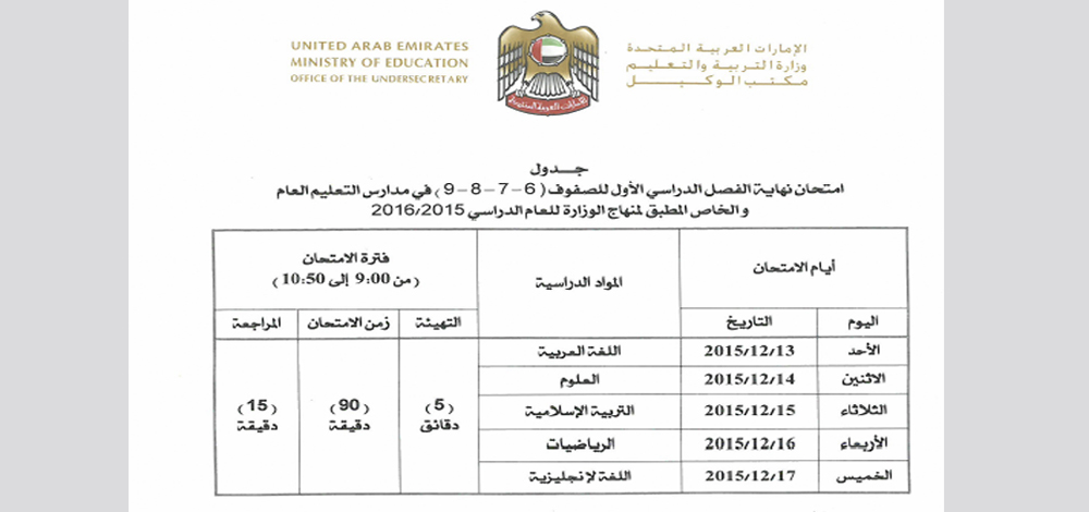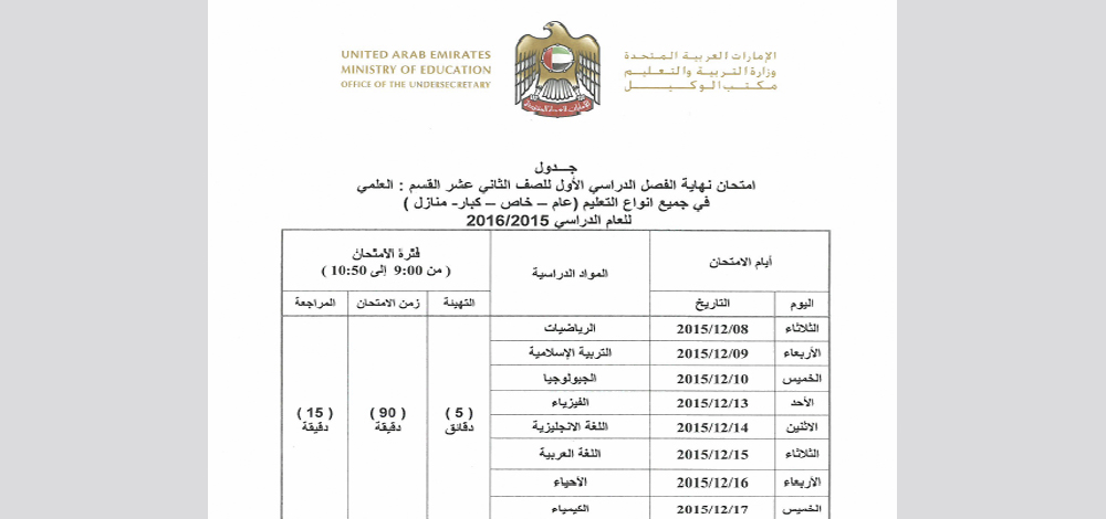 بالصور جداول اختبارات الفصل الأول من الصف السادس إلى الثاني عشر.