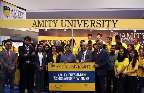 وتبلغ قيمة المنحة الدراسية الواحدة 35 ألف درهم، توجّه لمصاريف الدراسة الجامعية لنيل درجة البكالوريوس أو الماجستير في أيٍّ من التخصصات التي تُدرّس في الجامعة، ويفوز بها طلبة الثانوية العامة الذين يقدّمون كشوف درجاتهم المدرسية الأعلى. وتقدّم جامعة "آميتي دبي" منحة دراسية واحدة لطالب واحد كل يوم من أيام المعرض الذي تتواصل فعالياته حتى السبت 2 إبريل.