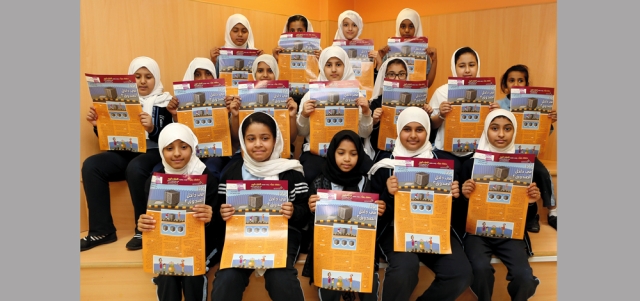طلبة في مدرسة التقدم للتعليم الأساسي أبدوا إعجابهم بمنشور هذا الأسبوع من «طفلك يقرأ». تصوير: نجيب محمد