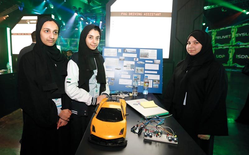 وتفصيلاً، أفادت الطالبات فاطمة ميزرا، وواضحة أحمد، وريم حارب، واليازية عادل، بأن النظام الذكي لتنبيه السائقين يتكون من حساسات يتم وضعها على جوانب السيارة، وفي الأمام لتنبيه السائق في حالة اقترابه من السيارة التي امامه أو في حالة تجاوزه خط السير الخاص به واقترابه من سيارات محاذية له، مؤكدات أن ابتكارهن يهدف إلى الحماية من الحوادث أثناء فترات الضباب، وتقليل الاختناقات المرورية التي تصاحب تلك الأحوال الجوية.