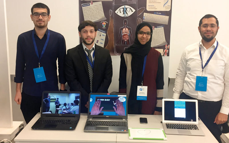 ابتكر أربعة طلبة يدرسون الهندسة بجامعة الحصن في أبوظبي، تطبيقاً ذكياً أطلقوا عليه اسم «أرى» لمساعدة الطلبة على تعلم مواد العلوم، ويعتمد البرنامج على شرح مكونات جسم الإنسان من خلال تكنولوجيا الواقع الافتراضي، ويتيح للطلبة التعرف إلى كل جزء من الجسم منفصلاً، وشاركوا بالابتكار في مسابقة تطبيقات الهواتف المتحركة 2017 وحققوا المركز الأول.