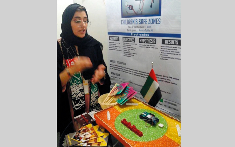 ابتكرت الطالبة آمنة طالب، من نادي الإمارات العلمي، جهازاً لمراقبة وتتبع الأطفال، ومعرفة أماكن تواجدهم، بهدف حمايتهم من الفقد، خصوصاً في الأماكن والأسواق العامة الكبرى، لافتةً إلى أنها تسعى لخدمة المجتمع من خلال تقديم ابتكار ذكي يحمي أبناءه، ويعزز أمن وسلامة أفراده، خصوصاً الأطفال الذين يميلون إلى الحركة الزائدة واللعب في الأماكن العامة، مثل الحدائق الكبرى والأسواق.