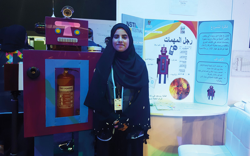 ابتكرت طالبة في مدرسة الطويين للتعليم الأساسي والثانوي، ريم سعيد راشد، «روبوت» أطلقت عليه اسم «رجل المهمات» لإطفاء الحرائق وكشف السرقات في المنازل، عن طريق تزويده بأجهزة وحساسات تساعد على تحقيق كشف السرقات والأدخنة وتسرب الغاز.