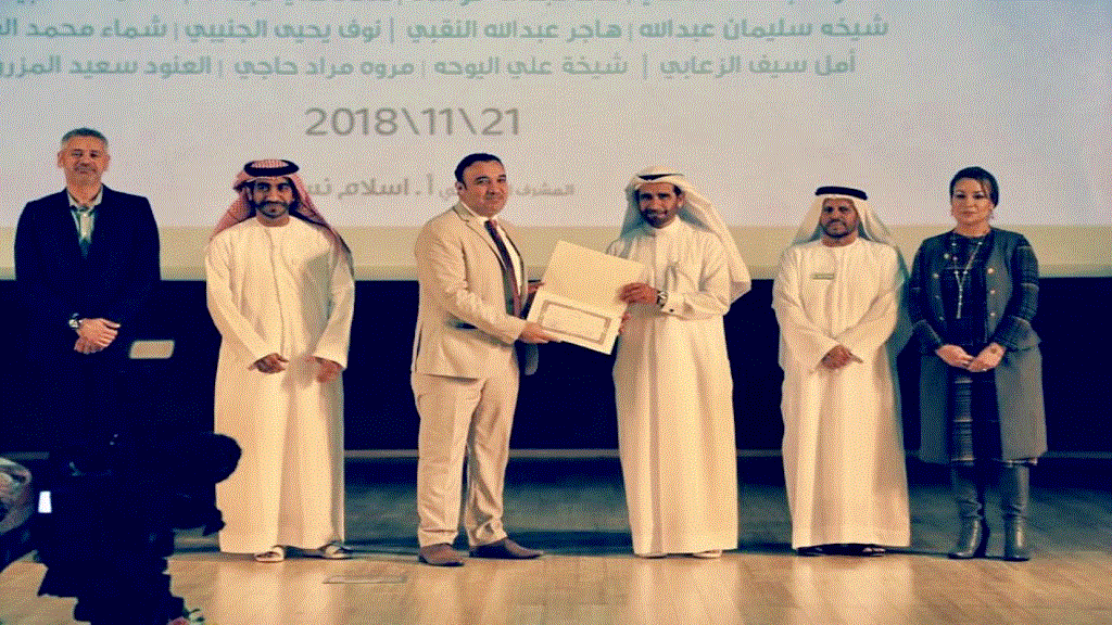 وجرى خلال الفعالية تكريم عدد من المشاركين والاساتذة الذين أسهموا بدعم الطلبة الخريجين، وفي مقدمتهم الأستاذ المشارك في الجامعة الأميركية في الإمارات، الدكتور أحمد خميس خليل الجنابي، الذي كان له دور فاعل في توجيه الطلبة وتدريبهم، نظرياً وعملياً، وهو ما بدى واضحا على جهود الطلبة في مشاريعهم التطبيقية الإعلامية.