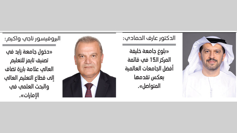 - «جامعة خليفة» تتصدر في دولة الإمارات.. و«جامعة زايد» تدخل «تايمز» للمرة الأولى.