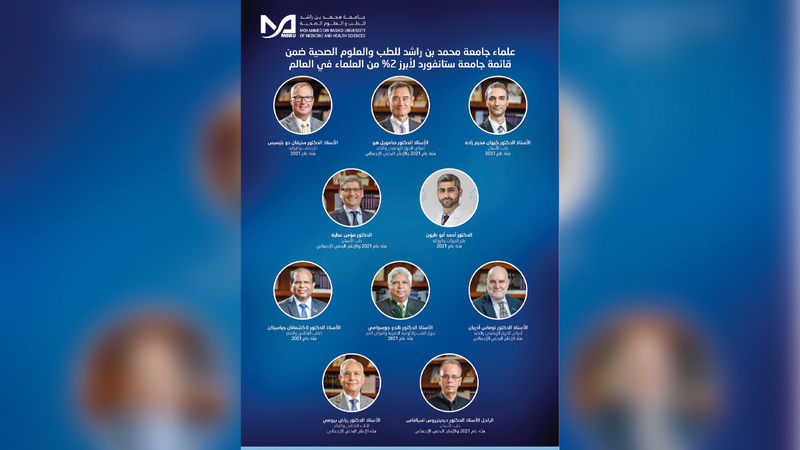 كشفت جامعة محمد بن راشد للطب والعلوم الصحية عن إدراج تسعة من أعضاء كادرها الأكاديمي، ضمن قائمة أبرز 2% من العلماء في العالم من قبل جامعة ستانفورد الأميركية، إحدى أهم مؤسسات البحث والتعليم العالي في العالم، وذلك في شهادة عالمية جديدة على تنامي مكانة دبي كمركز عالمي للامتياز البحثي والعلمي.