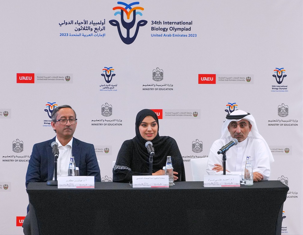 جاء ذلك خلال المؤتمر الصحفي الذي عقدته الوزارة في مقر جامعة الإمارات بمدينة العين بحضور رئيس النسخة 34 للأولمبياد الدولي للأحياء - الوكيل المساعد لقطاع الرعاية وبناء القدرات بوزارة التربية والتعليم، الدكتورة آمنة الضحاك الشامسي، والنائب المشارك للبحث العلمي في جامعة الإمارات، الدكتور أحمد علي مراد، ورئيس اللجنة الأكاديمية من النسخة 34 للأولمبياد الدولي للأحياء الدكتور صابر مظفر.