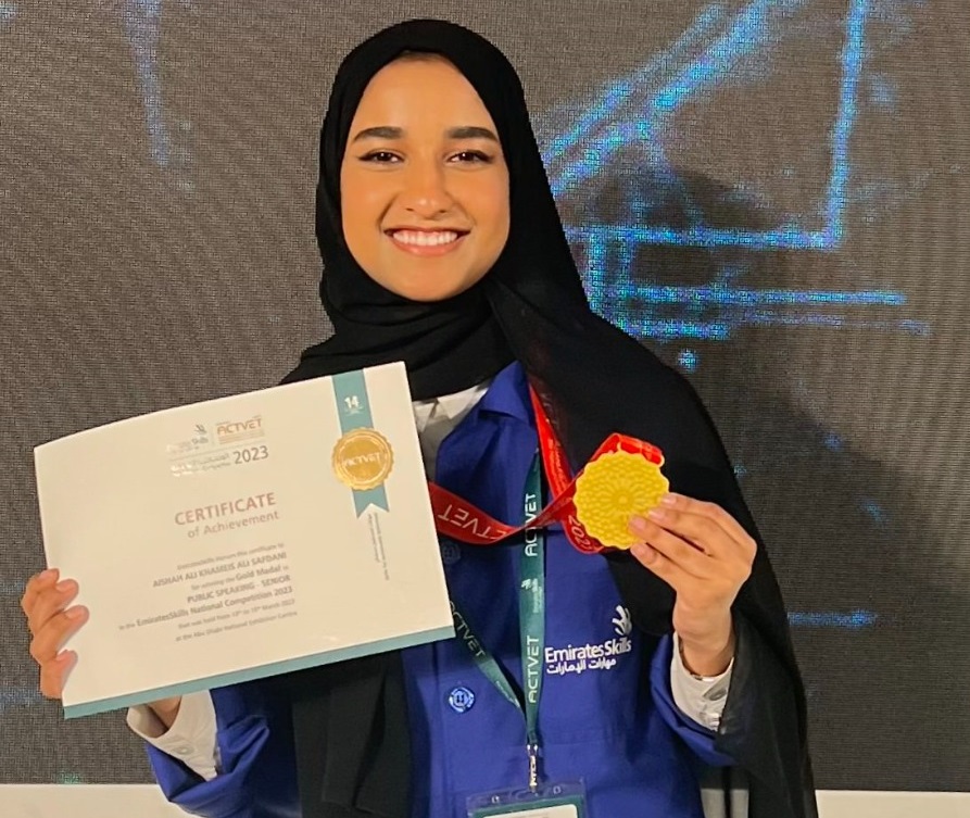 وأضافت، ذهبت في رحلة إلى اليابان مع وزارة التربية والتعليم وشاركت في برامج محاكاة في الأمم المتحدة، ومثلت الدولة مع مجموعة من الطلاب في ورقة نقاس نناقش تتعلق بالمناخ، كما شاركت في مسابقة "مهارات الامارات" في فن الخطابة باللغتين العربية والإنجليزية وحصلت على الميدالية الذهبية، لذلك لأسعى لدراسة علوم سياسية وعلاقات دولية، لأن عندي شغف للتعبير عن آرائي وأريد أن أساعد وأدعم المجتمع قدر ما أستطيع المجتمع وأحاول الاهتمام بالمتغير المناخي والعوم السياسية.