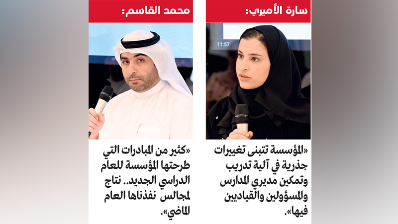 ولفت إلى أن «من أبرز الملاحظات التي تلقتها المؤسسة خلال المجالس، إعادة النظر في عملية تدريب الكوادر التعليمية، وتمكين المعلمين والاستفادة من الخبرات الموجودة في الميدان التربوي، ومن ثم عملت المؤسسة على إدخال تغييرات جذرية لآليات التدريب والتمكين لمديري المدارس والمسؤولين بها، إضافة إلى إعادة النظر في التدرج الوظيفي، وفتح فرص أكبر للموجودين في الميدان التربوي وتطويرهم بطريقة استباقية».