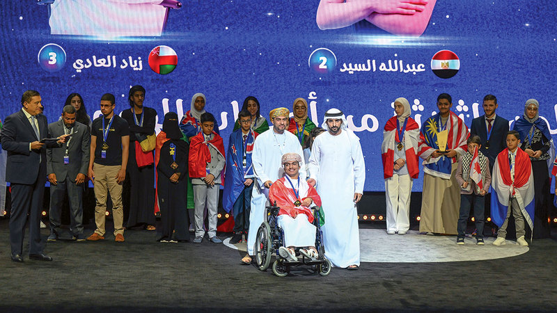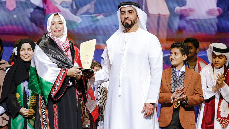 وجرى تكريم بطل الجاليات، والمشرف المتميز، و«بطل تحدي القراءة العربي» في فئة أصحاب الهمم، وأوائل الطلبة المشاركين في التصفيات على مستوى الدول، بحضور أكثر من 1500 شخصية.