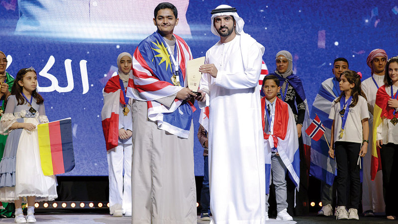 جاء ذلك خلال تكريم سموه أمس، في أوبرا دبي، الطالب عبدالله محمد عبدالله البري، من قطر، والطالبة آمنة محمد المنصوري، من الإمارات، بعد إحرازهما مناصفة لقب «بطل تحدي القراءة العربي» في دورته السابعة 2023، التي شهدت مشاركة قياسية من خلال 24.8 مليون طالب وطالبة، من 46 دولة، وأكثر من 188 ألف مدرسة، ونحو 150 ألف مشرف ومشرفة قراءة.