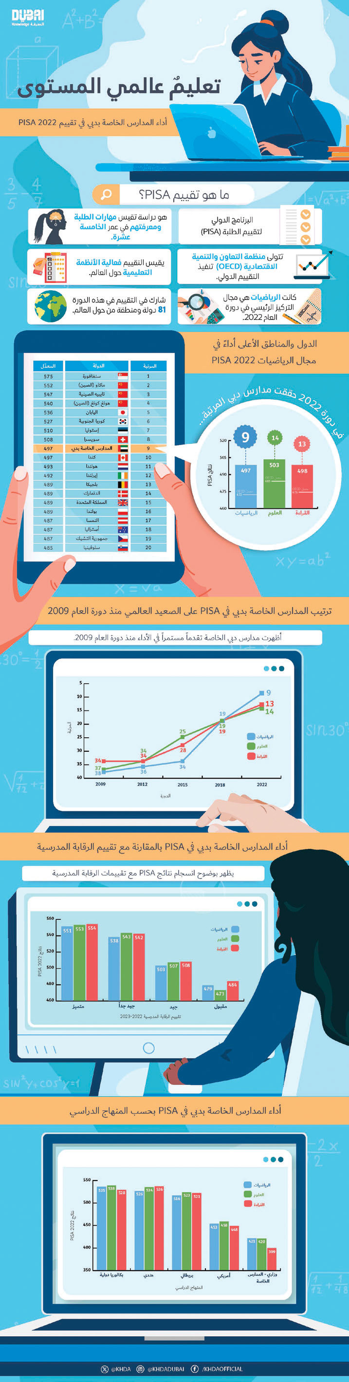 للإطلاع على تقييم آداء وترتيب المدارس الخاصة بدبي في (PISA)، يرجى الضغط على هذا الرابط.
