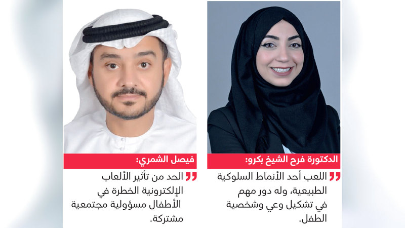 من جانبه، أكد رئيس مجلس إدارة جمعية الإمارات لحماية الطفل، فيصل الشمري، أن هناك مسؤولية مجتمعية مشتركة لدرء مخاطر التقنيات الحديثة، والحد من تأثير الألعاب الإلكترونية الخطرة في الأطفال، وفي مقدمتها الأسرة، والمدرسة، ومؤسسات المجتمع المدني، وكذا شركات الاتصالات الوطنية، التي تقع على عاتقها مسؤولية تطوير ممكنات رقابة الأهالي، والسلطات الرقابية وأجهزة إنفاذ القانون المحلية والاتحادية لفرض أولوليات التطوير والتوعية، لاسيما في ظل المسؤولية الأخلاقية والمدنية على الشركات التقنية ومزودي خدمات الإنترنت ومطوري الألعاب الرقمية التفاعلية.