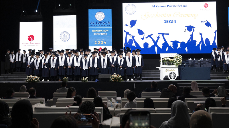 تحوّل حفل تخرج لطلبة الصف الـ12 بمدرسة الزهور الأميركية الخاصة في الشارقة إلى احتفالية استثنائية، بسبب تدوينة لولي أمر أحد الطلبة، قال فيها الوالد إبراهيم الشامسي، الشهير على منصة «إكس» بحساب «دايفر»، مازحاً: «مدرسة ولدي في الشارقة، التخريج في مركز دبي التجاري العالمي، ليش؟! بتخرجون محمد العبار».