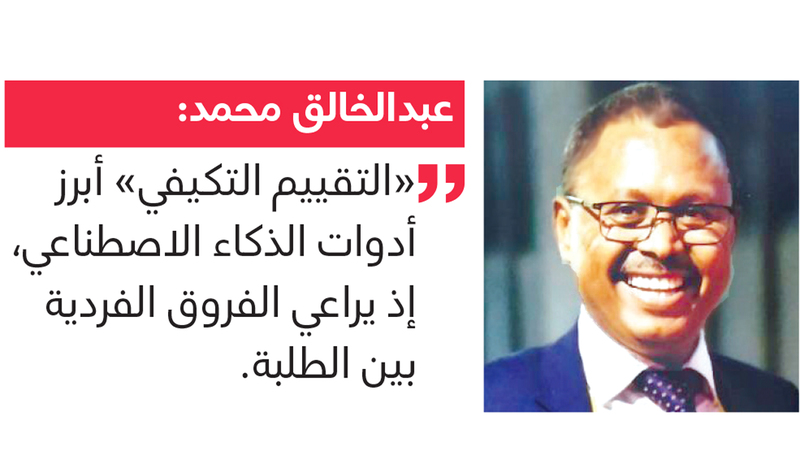 وأكد الخبير التربوي والمختص في تطوير أنظمة التعليم، عبدالخالق محمد، أن الذكاء الاصطناعي يفتح الباب أمام «التقييم التكيفي»، الذي يعد أبرز ما أفرزته أدوات الذكاء الاصطناعي، إذ يراعي الفروق الفردية بين الطلبة، ويمنح كلاً منهم تجربة مخصصة وفقاً لقدراته ووتيرته الخاصة.