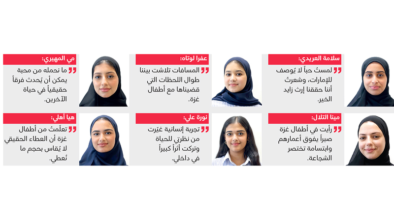 وقالت الطالبة مي المهيري: «كانت الزيارة درساً لا يُنسى في الحب والبذل دون مقابل. شعرت بأننا نمنح شيئاً من ذاتنا، لا مجرد وقت أو مجهود. عندما رأيت الفرح في عيون أطفال غزة، أدركت أن رسالتنا وصلت، وأن ما نحمله من محبة وسلام يمكن أن يُحدث فرقاً حقيقياً في حياة الآخرين».