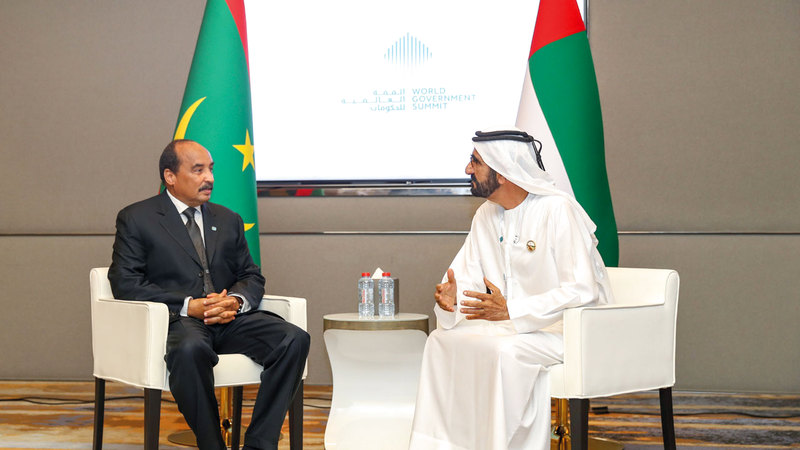 وشكر الرئيس ولد عبدالعزيز صاحب السمو الشيخ محمد بن راشد آل مكتوم على دعوته لحضور القمة العالمية للحكومات، التي وصفها بالملتقى الدولي الذي يبحث فيه المشاركون في إيجاد أفضل السبل وتبني الأفكار البناءة من أجل سعادة الإنسان.واستقبل صاحب السمو نائب رئيس الدولة، بحضور ولي عهده، المبعوث الخاص لرئيس الصين، وزير العلوم والتكنولوجيا، وانغ جيجانغ، الذي نقل إلى سموه تحيات رئيس مجلس الدولة الصيني، ورئيس الجمهورية، وتمنياتهما لدولة الإمارات قيادة وحكومة، بالنجاح في مساعدة بعض الدول في إقليم العالم الثالث على التقدم في قطاع التطوير الحكومي.